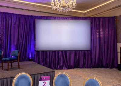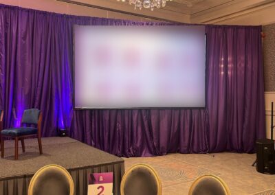 Pipe and Drape InstallationPipe and drape were installed to frame the stage area and create a refined, professional backdrop. This not only improved the aesthetics of the room but also helped define the presentation space and eliminate visual distractions within the venue.
