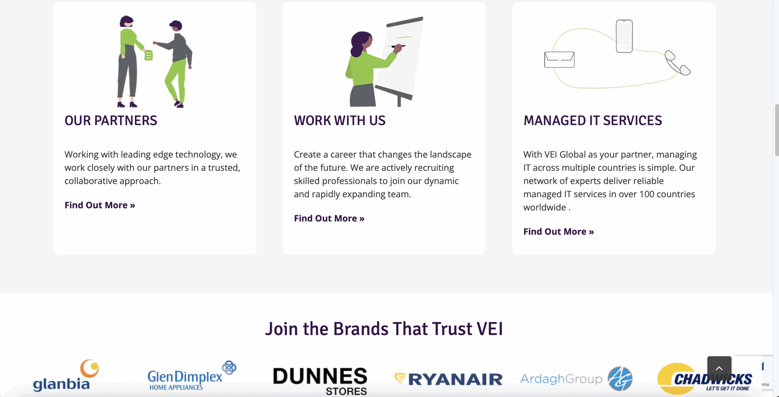 Brand Representation & Visual ConsistencyIn addition to content, we worked on graphic elements and page presentation to ensure the overall look and feel stayed true to VEI Global’s established brand identity. From iconography and colour palettes to layout recommendations, we focused on visual harmony and consistency, ensuring the digital experience reflected VEI Global’s professionalism and reliability.
